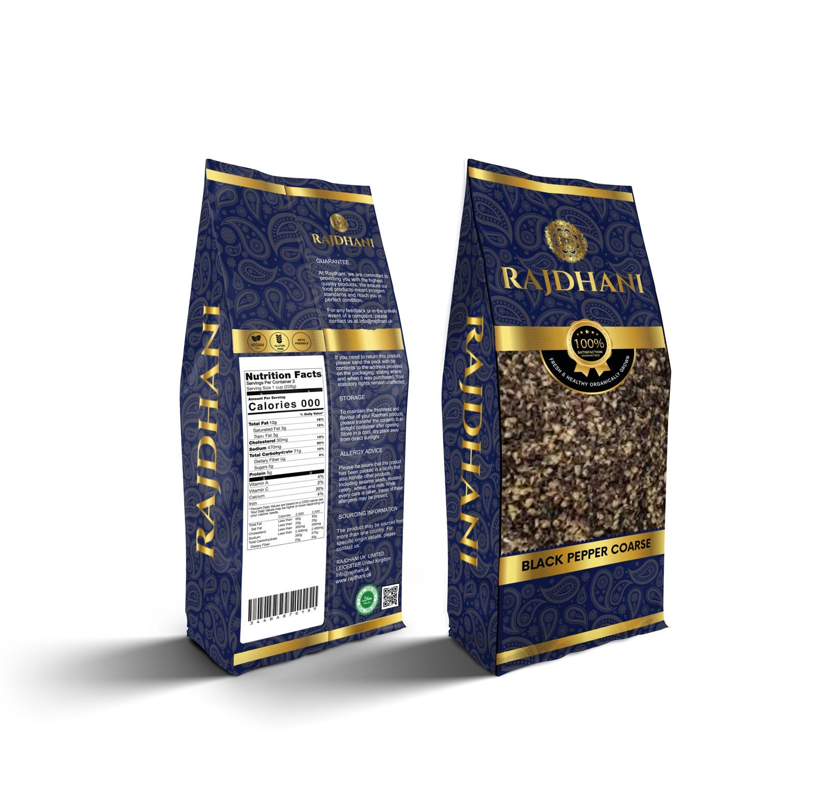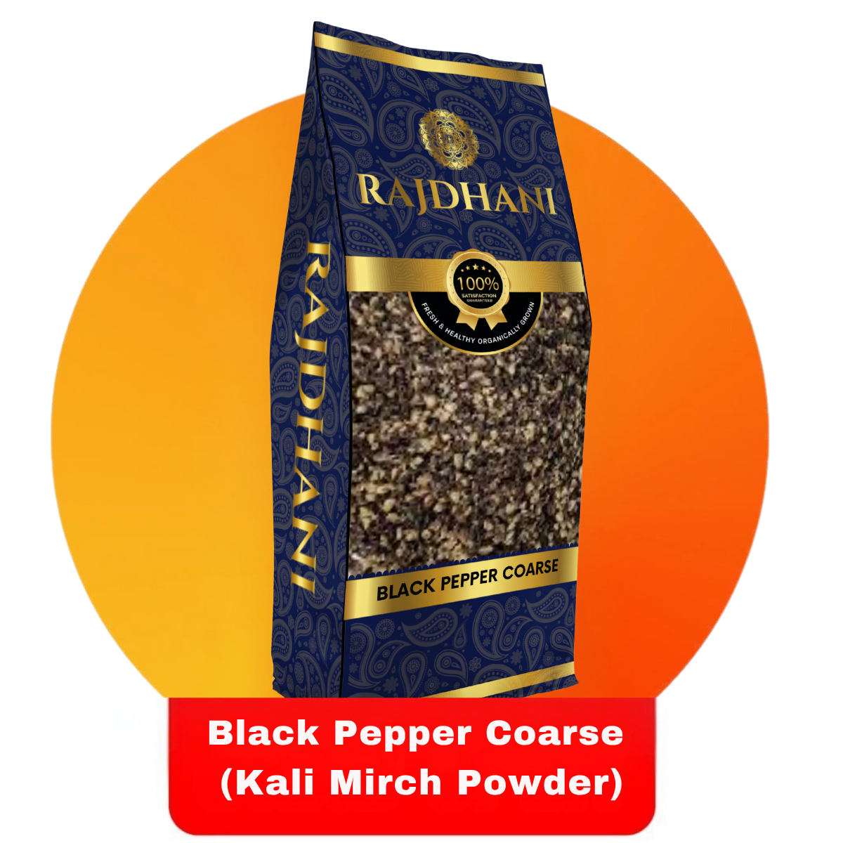 Rajdhani Black Pepper Coarse (Kali Mirch Powder) delivers a bold, spicy flavor to every dish.