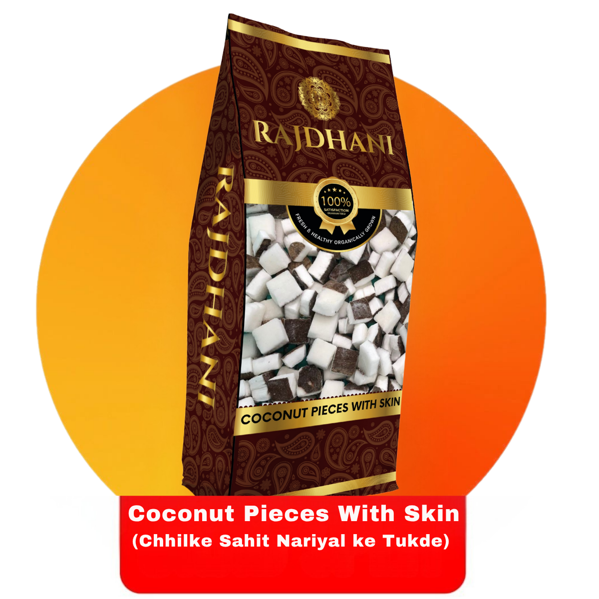Rajdhani Coconut Pieces With Skin (Chhilke Sahit Nariyal ke Tukde) are natural, sun-dried coconut chunks full of flavor.